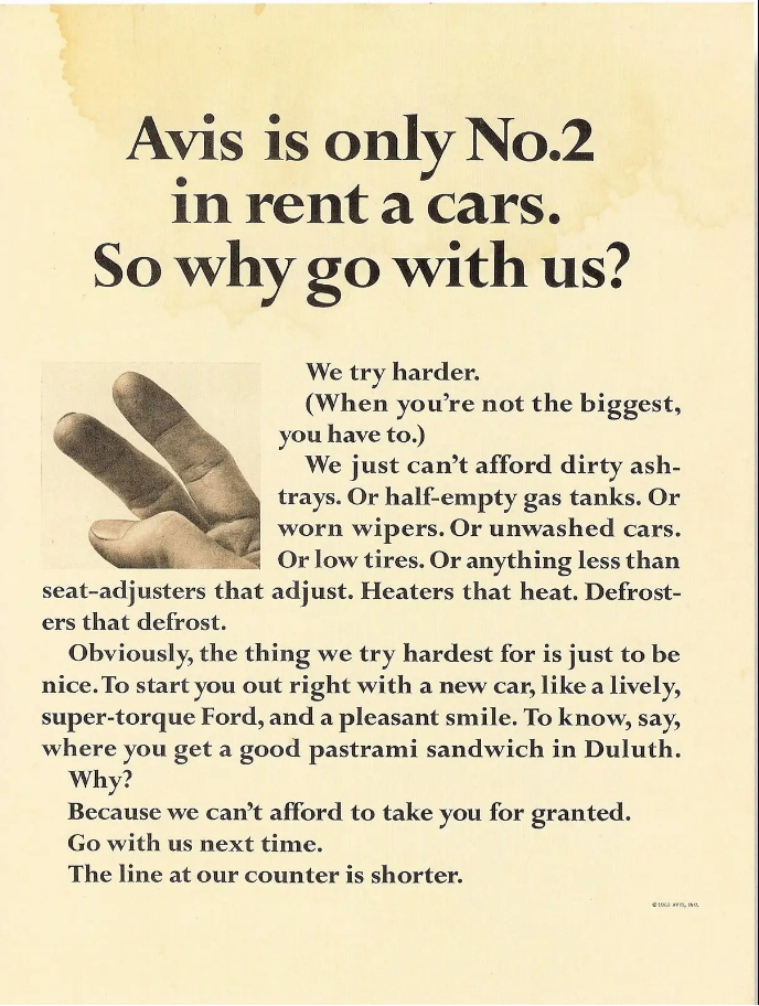 “We’re number two, so we try harder”.