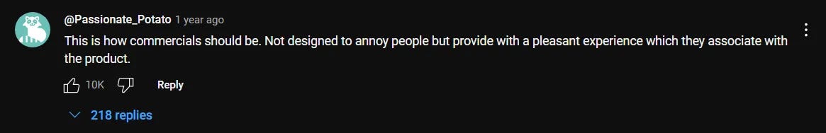 And if you scroll down, and check the comments of that video, people are genuinely happy and expressing that this is a great ad.